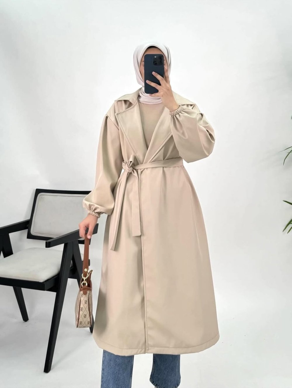 Bondit Kumaş Trençkot Krem