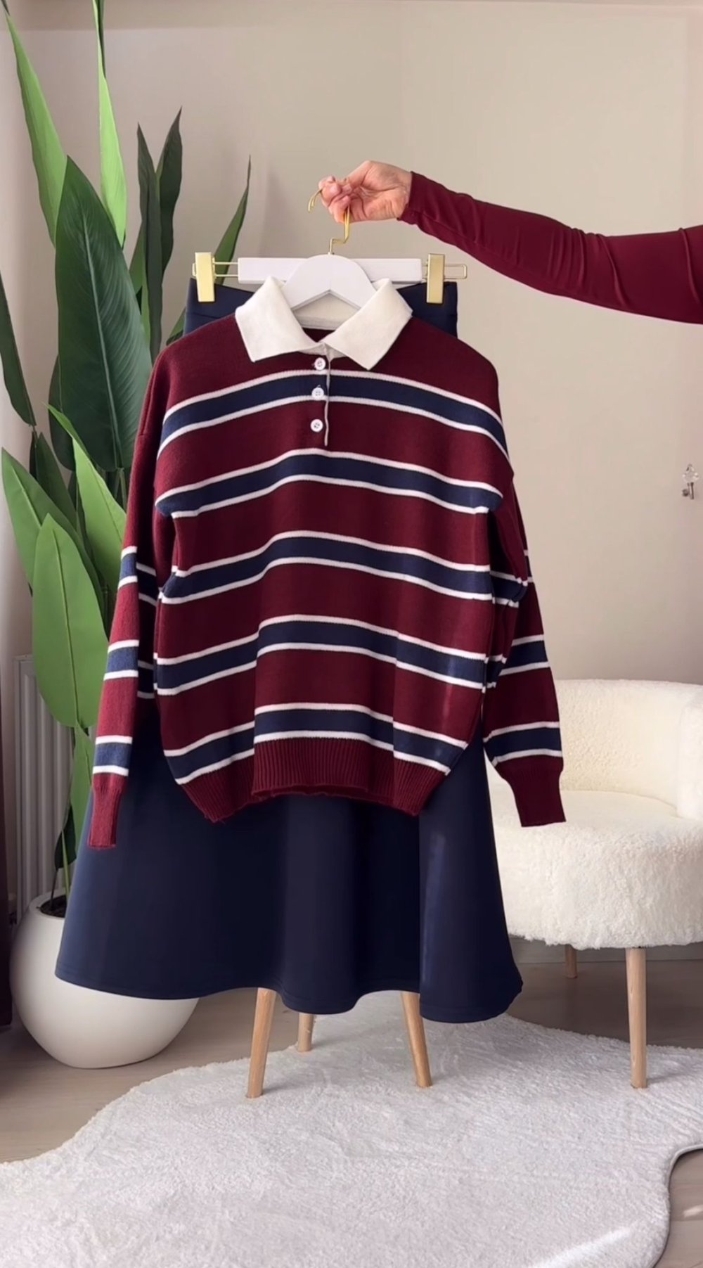 Çizgili Kazak Etek Kombin Çoklu Renk