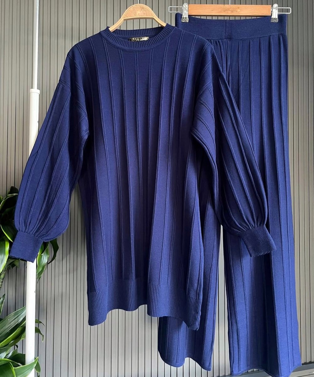 Çizgili Triko Takım Lacivert
