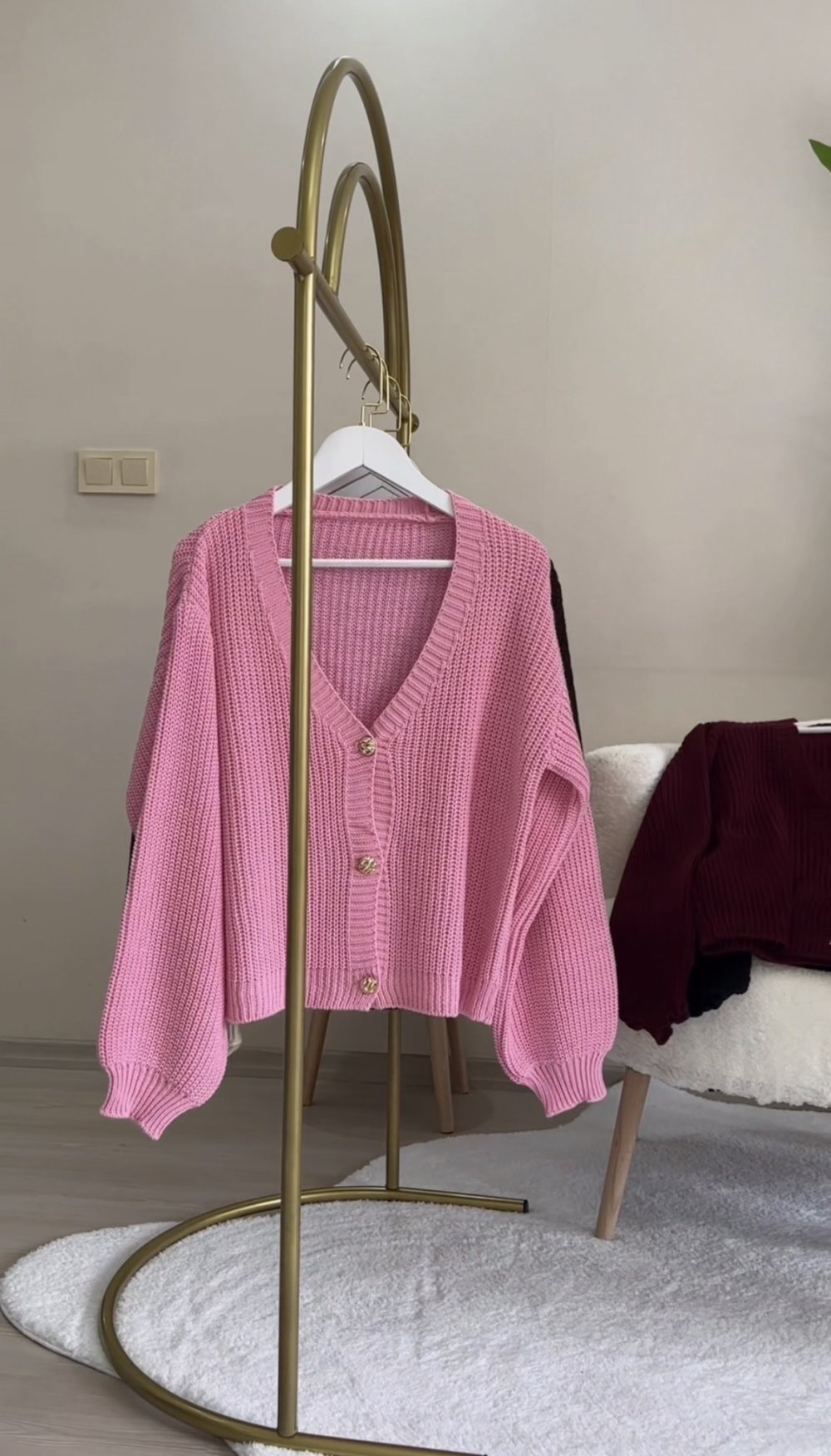 Düğmeli Hırka Pembe