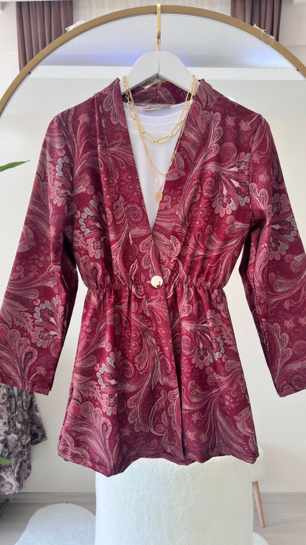 Etnik Desen Ceket Bordo