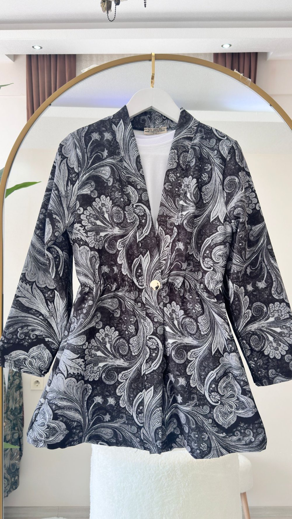 Etnik Desen Ceket Gri