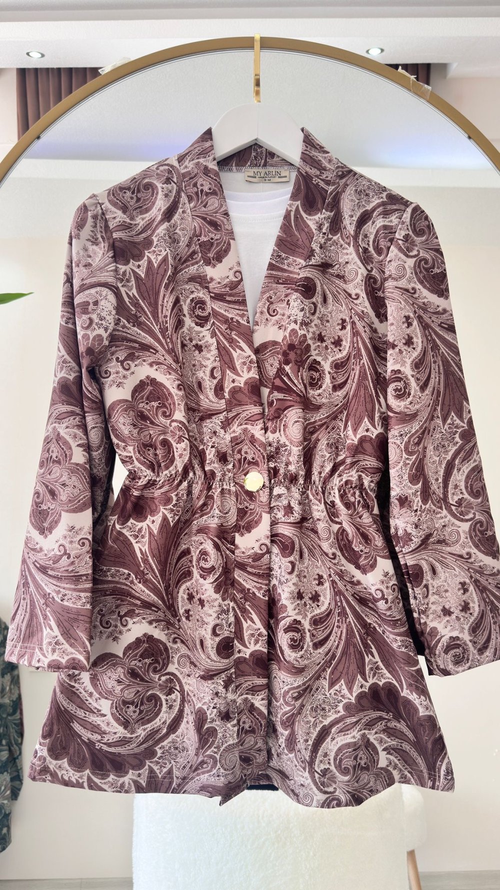 Etnik Desen Ceket Krem