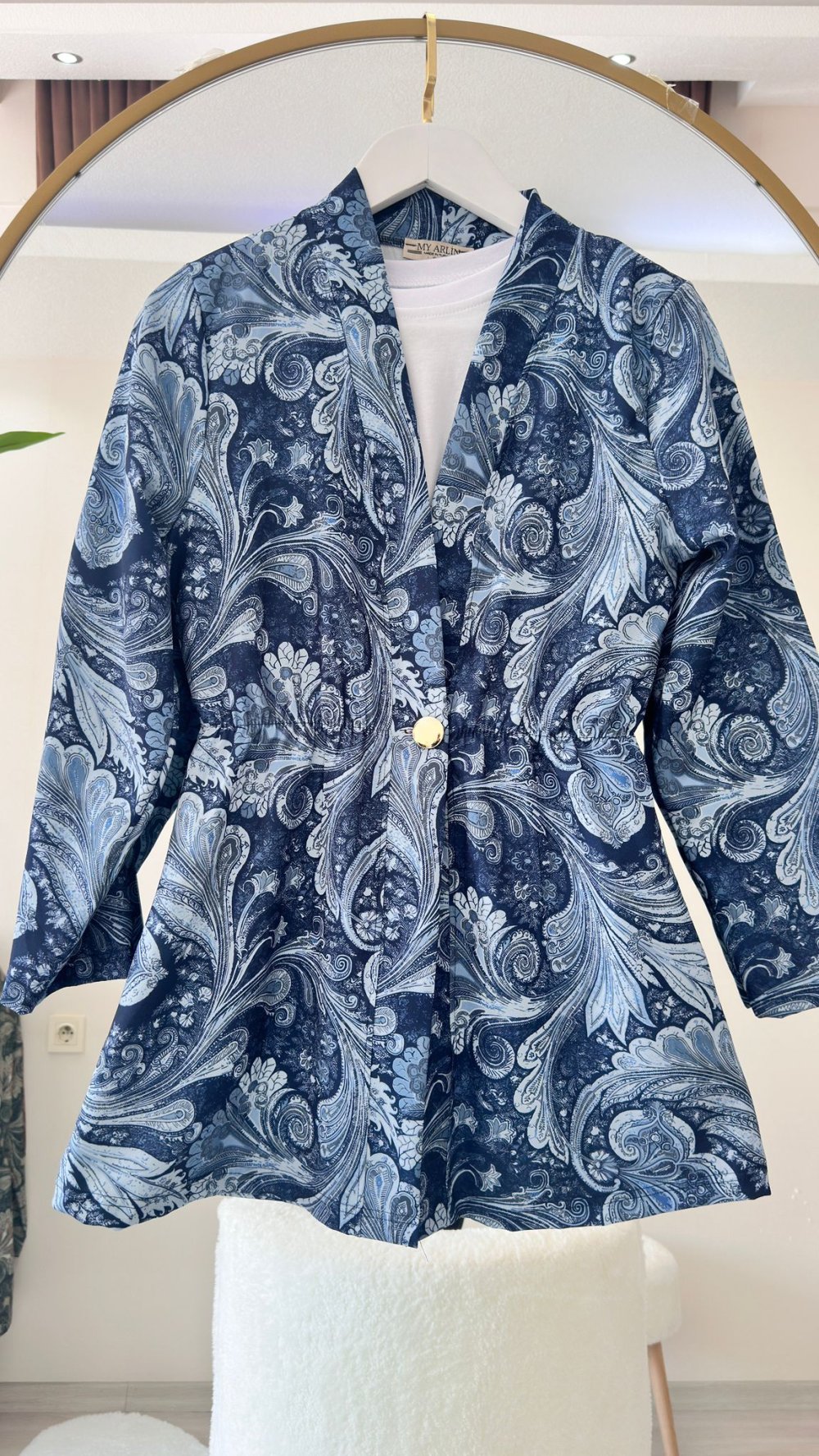 Etnik Desen Ceket Mavi